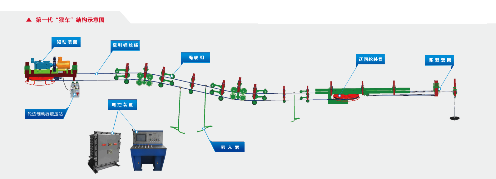 第一代“猴車”——機械驅(qū)動式架空乘人裝置(俗稱“機械猴車”)
