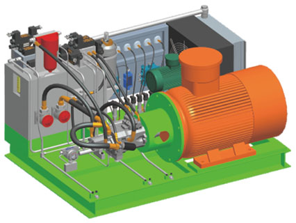 適用于小坡度、短線路、負(fù)載小的架空乘人裝置運(yùn)行。根據(jù)布置方式分為臥式單泵液壓站和立式單泵液壓站。