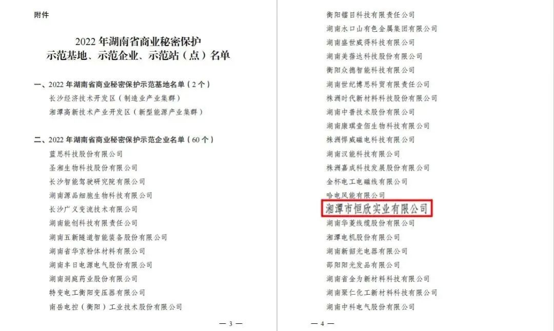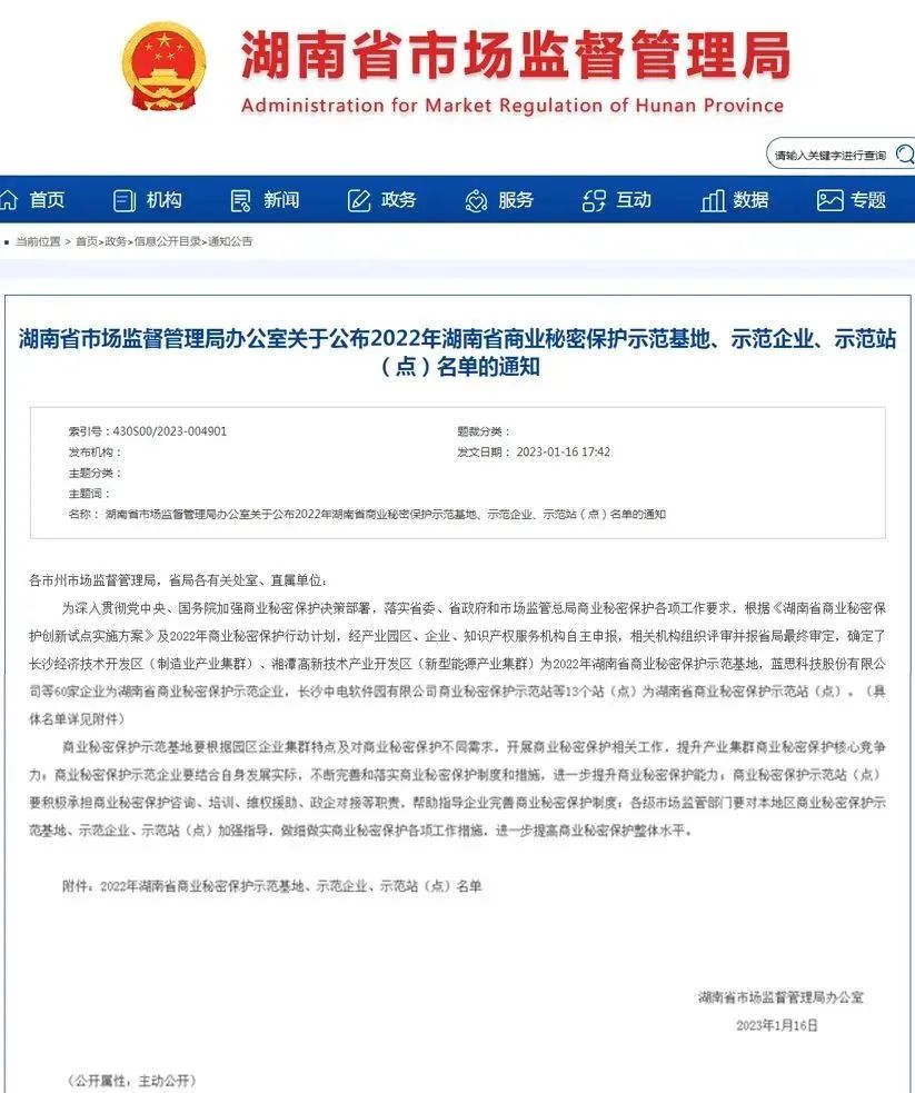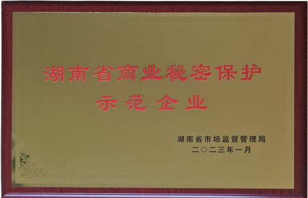 我司認(rèn)定為湖南省商業(yè)秘密保護(hù)示范企業(yè)