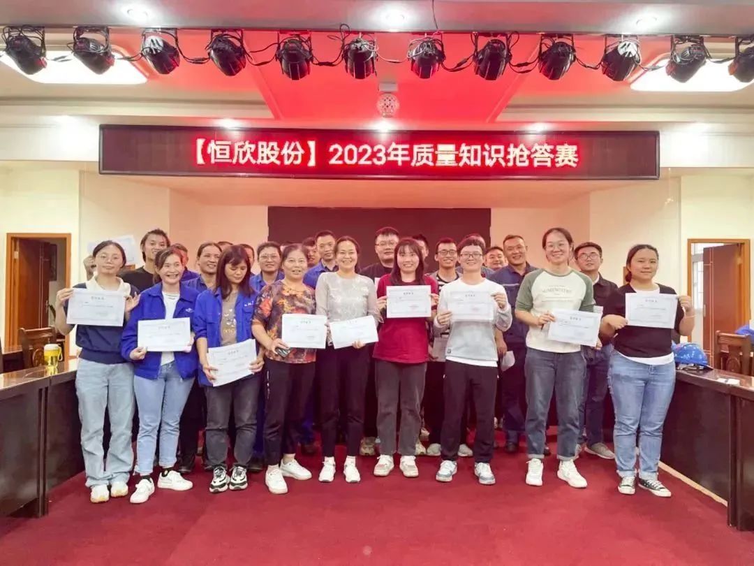 為活躍公司質(zhì)量文化氛圍,增強(qiáng)全員質(zhì)量意識,9月23日下午,【恒欣股份】舉辦了2023年度質(zhì)量知識搶答賽活動,由質(zhì)量總監(jiān)段杰圓主持。