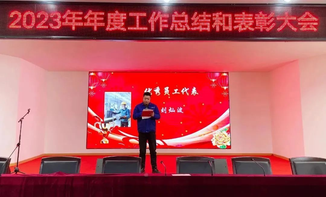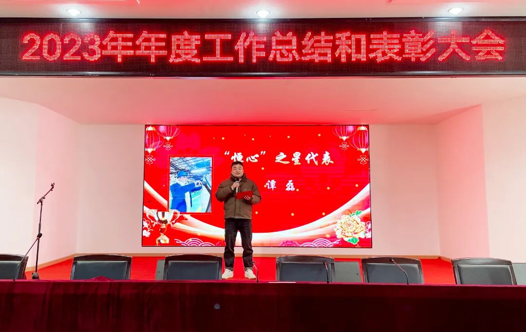 在表彰環(huán)節(jié),對2023年度的3個先進班組和57名優(yōu)秀員工、標兵和勞模分別進行了表彰,感謝他們在過去一年中勤勉工作、拼搏進取,為公司實現(xiàn)銷售訂單、營業(yè)收入、公司凈利潤等經(jīng)營指標的大幅增長,起到了表率作用和大的貢獻!同時,在表彰過程中,部分優(yōu)秀員工代表紛紛上臺感言,分享了各自敬業(yè)愛崗的工作情懷和職業(yè)操守,深深感恩【恒欣股份】給員工們打造的良好平臺,不僅給400多名員工的就業(yè)機會,而且讓全體員工的福利待遇年年增長!并表示將會繼續(xù)發(fā)揮先進表率作用,以更加飽滿的熱情投入到今后的工作中,為公司持續(xù)健康的高質(zhì)量發(fā)展作貢獻!
