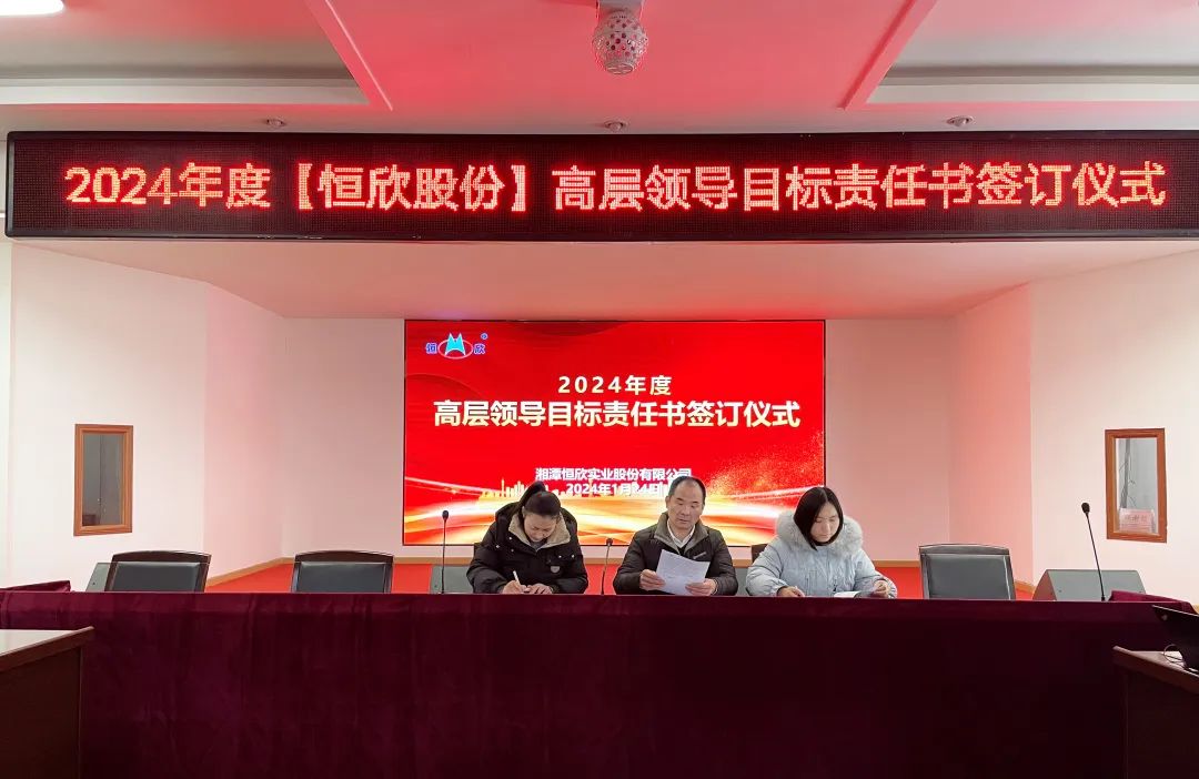 鳴鼓掛帥錨目標(biāo),滿弓勁發(fā)啟新程!1月24日下午,【恒欣股份】舉行2024年度目標(biāo)責(zé)任書簽訂儀式。儀式由董事長肖公平主持,副董事長肖連平、總經(jīng)理肖龍武和全體高層領(lǐng)導(dǎo)、中層干部參加了簽訂儀式。