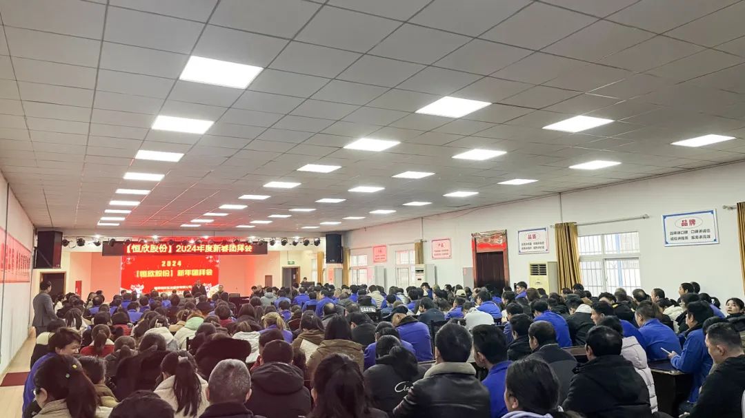 團(tuán)拜會上,董事長肖公平致新春賀詞,向全體員工致以節(jié)日問候和美好祝福。肖董事長表示,回首過去2023年我們收獲了累累碩果,希望2024年新的征程,能夠收獲更美好的未來。在春節(jié)期間,為客戶保履約,依然堅守在崗位上的員工表示欽佩,他們肩扛責(zé)任擔(dān)當(dāng),解客戶之憂,排客戶之難,用拼搏與奉獻(xiàn)書寫新春最美“敬業(yè)?!?,完美詮釋了【恒欣股份】“四品文化”,并現(xiàn)場連線了出差的三名售后技術(shù)工程師吳工、左工、蘇端志師傅、熊恩泉師傅,分別為他們送去了新春的祝福和問候?!竞阈拦煞荨坎粩喟l(fā)展壯大離不開像他們一樣默默奉獻(xiàn)的廣大員工,對為【恒欣股份】建設(shè)發(fā)展作出貢獻(xiàn)的員工們表示衷心感謝。