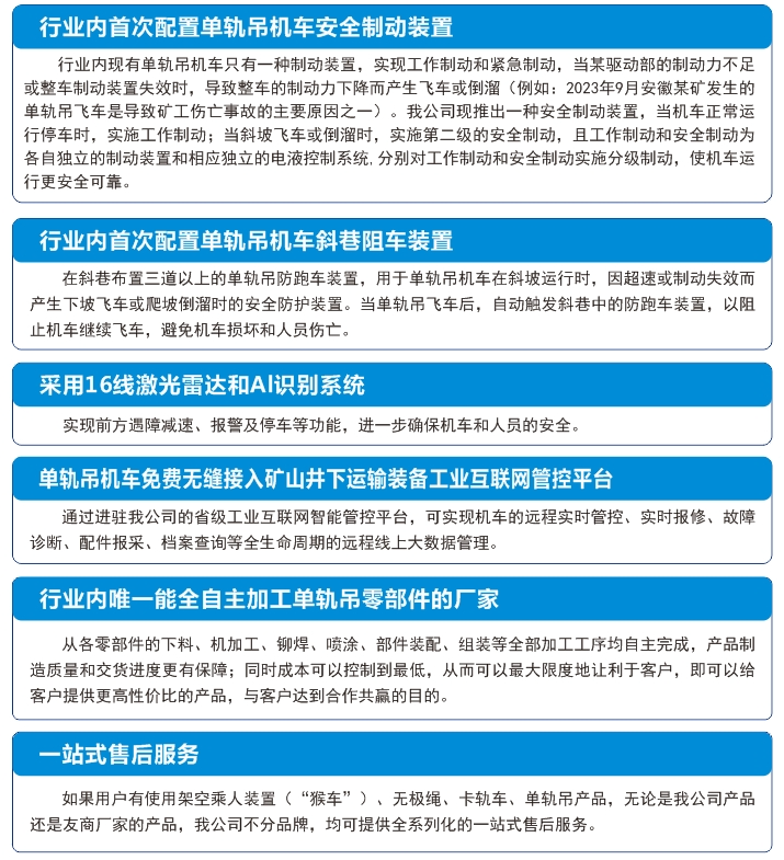 【恒欣股份】單軌吊機車具有六大優(yōu)勢,投放市場后深受用戶歡迎,被評定為湖南省2022年度重點工業(yè)新產(chǎn)品,榮獲綠色礦山礦業(yè)裝備質(zhì)量金獎。