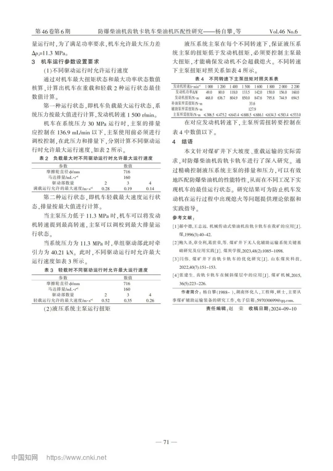 研究結(jié)果表明,通過控制不同機(jī)車型號(hào)的大負(fù)載運(yùn)行速度及主泵的最大扭矩,能夠有效避免機(jī)車在運(yùn)行過程中發(fā)生發(fā)動(dòng)機(jī)熄火的情況。這項(xiàng)研究為防爆柴油機(jī)齒軌卡軌車的設(shè)計(jì)和應(yīng)用提供了理論依據(jù),同時(shí)為其在煤礦井下大坡度、重載運(yùn)輸中的實(shí)際應(yīng)用提供了技術(shù)支持和指導(dǎo)。