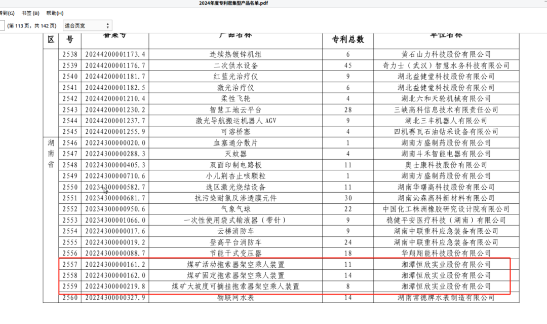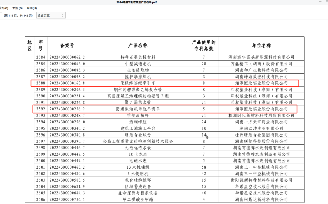 近日,國(guó)家專利保護(hù)協(xié)會(huì)公布了2024年度專利密集型產(chǎn)品名單。其中,【恒欣股份】的“煤礦固定抱索器架空乘人裝置、煤礦大坡度可摘掛抱索器架空乘人裝置、防爆柴油機(jī)單軌吊機(jī)車、煤礦活動(dòng)抱索器架空乘人裝置、無(wú)極繩連續(xù)牽引車”等5件產(chǎn)品被認(rèn)定為專利密集型產(chǎn)品。本次全省共認(rèn)定專利密集型產(chǎn)品132件,其中湘潭市共有13件入選,韶山市總計(jì)6件入選。【恒欣股份】憑借5件入選產(chǎn)品,在湘潭市中占比38.5%,在韶山市中占比高達(dá)83%。這一成績(jī)充分展現(xiàn)了【恒欣股份】在知識(shí)產(chǎn)權(quán)建設(shè)方面的強(qiáng)勁實(shí)力。