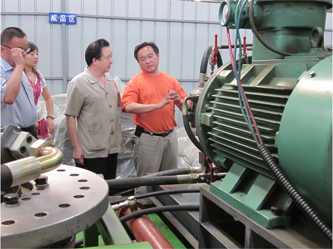 公司董事長肖公平為會長張維新先生及各位領(lǐng)導(dǎo)講解公司發(fā)展歷程、近期發(fā)展計劃。