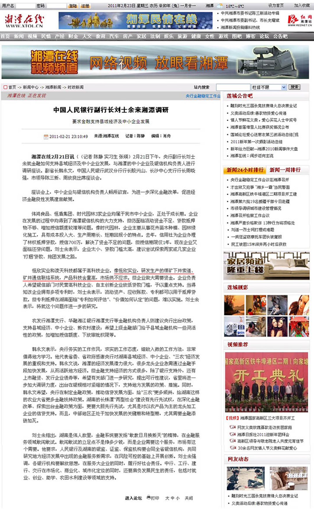 xiao12666@163.com中國人民銀行副行長劉士余來湘潭調(diào)研,強(qiáng)調(diào)恒欣實(shí)業(yè)屬于高科技企業(yè)