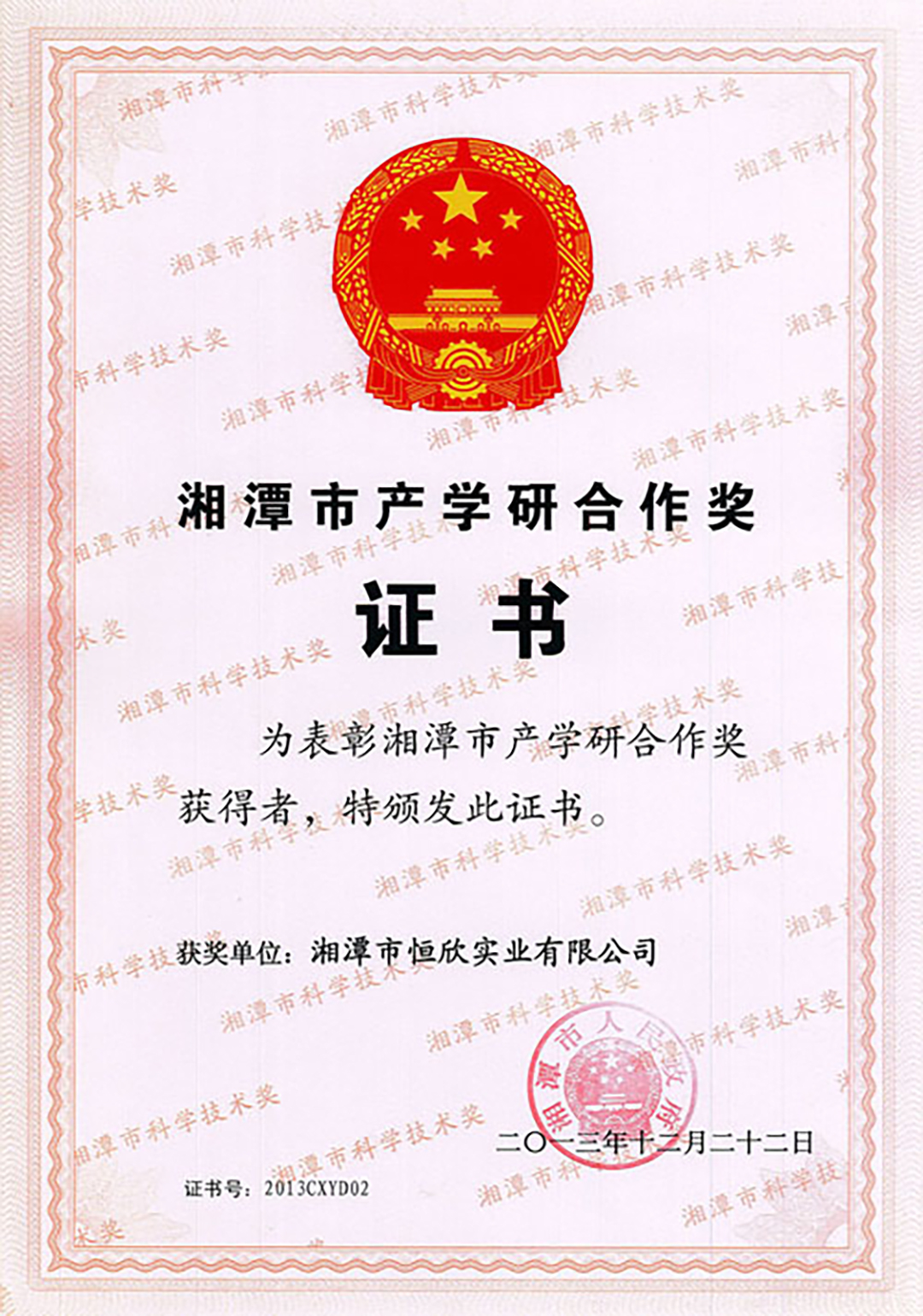 xiao12666@163.com湘潭恒欣榮獲湘潭市產(chǎn)學研合作獎