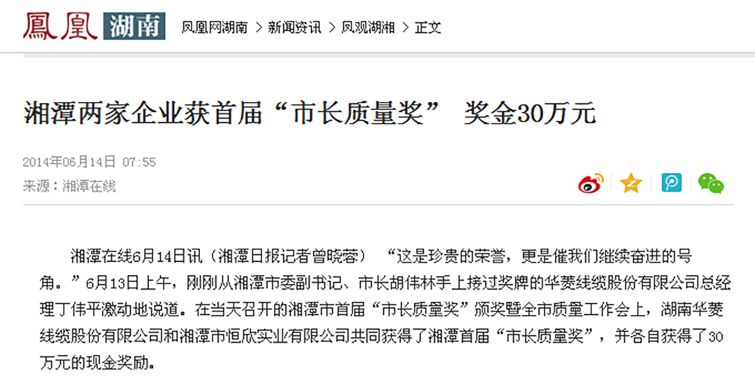 xiao12666@163.com鳳凰網(wǎng)、紅網(wǎng)隆重報(bào)道:“湘潭恒欣”榮獲湘潭市首屆“市長質(zhì)量獎(jiǎng)”
