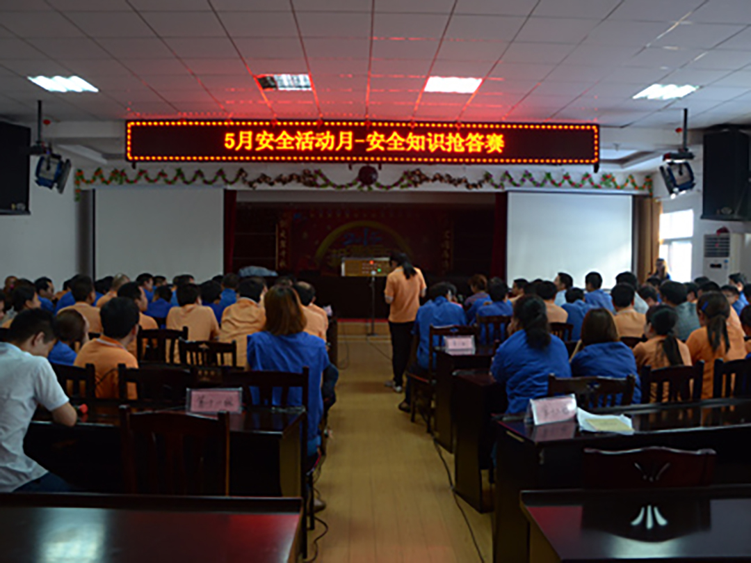 公司除開展5月專項安全生產(chǎn)月活動以外,在日常工作中時刻不忘“安全就是生命,生命就是一切”的安全理念,為此,除設(shè)備安全部負責公司安全生產(chǎn)管理以外,還成立了安全管理分會進行日常安全巡檢工作,并與各生產(chǎn)班組長簽訂了安全生產(chǎn)責任狀,每月組織員工進行安全生產(chǎn)培訓,并通過公司內(nèi)部廣播系統(tǒng)、月報、宣傳欄、QQ、微信平臺等方式進行安全生產(chǎn)知識宣傳,使安全生產(chǎn)意識深入每位員工心中。