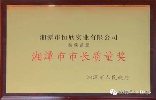 3.市級(jí)榮譽(yù):2014年【湘潭恒欣】榮獲“湘潭市首屆市長(zhǎng)質(zhì)量獎(jiǎng)”、“全市加速推進(jìn)新型工業(yè)化二等獎(jiǎng)”。