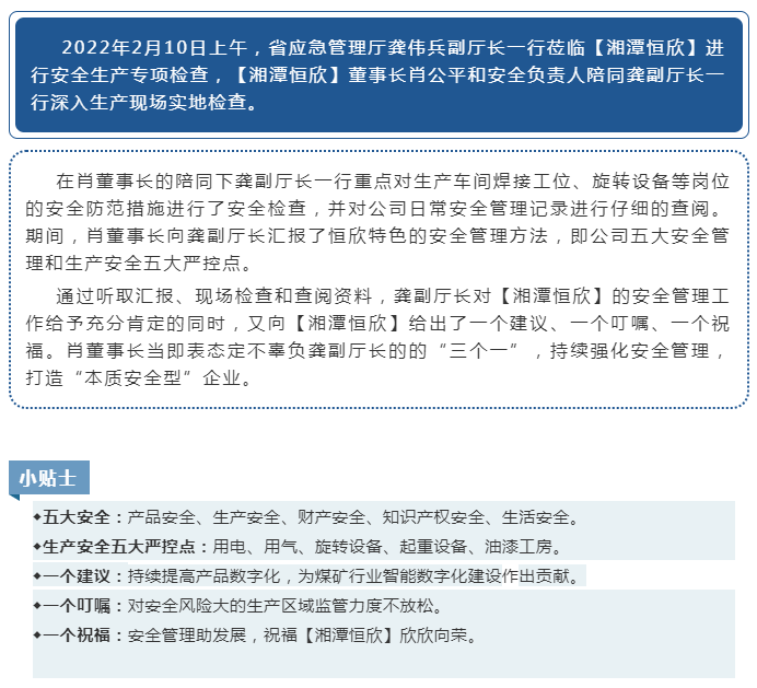 xiao12666@163.com省應(yīng)急管理廳龔偉兵副廳長(zhǎng)帶隊(duì)蒞臨【湘潭恒欣】檢查企業(yè)復(fù)工復(fù)產(chǎn)安全防范工作