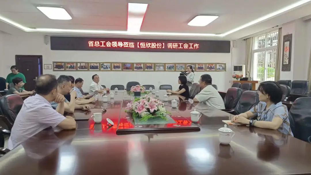 在會(huì)議室,肖董事長向劉主席一行介紹了公司工會(huì)工作,并陪同劉主席一行重點(diǎn)參觀了公司員工活動(dòng)中心,并深入活動(dòng)中心的員工卡拉OK室、健身房、乒乓球室進(jìn)行視察。通過視察,劉主席對(duì)【恒欣股份】工會(huì)所作的工作表示肯定,同時(shí),寄希望作為省模范職工之家的【恒欣股份】工會(huì),還需繼續(xù)完善和提升員工陣地規(guī)范化建設(shè)水平,不斷增強(qiáng)員工凝聚力、向心力,增進(jìn)員工歸屬感,讓員工積極地為企業(yè)發(fā)展助力。