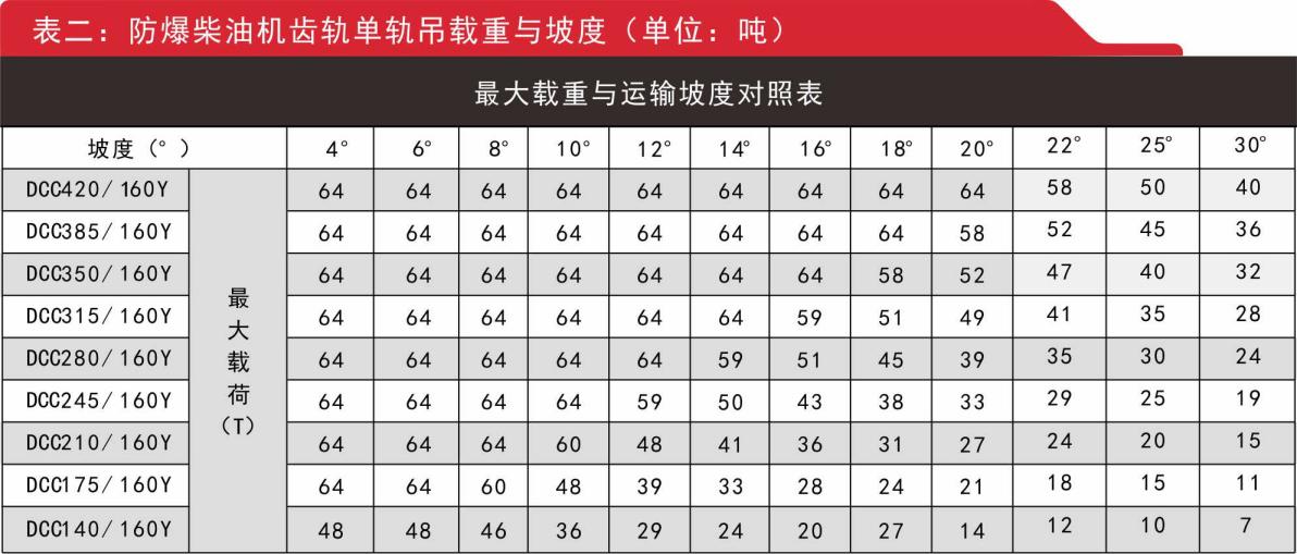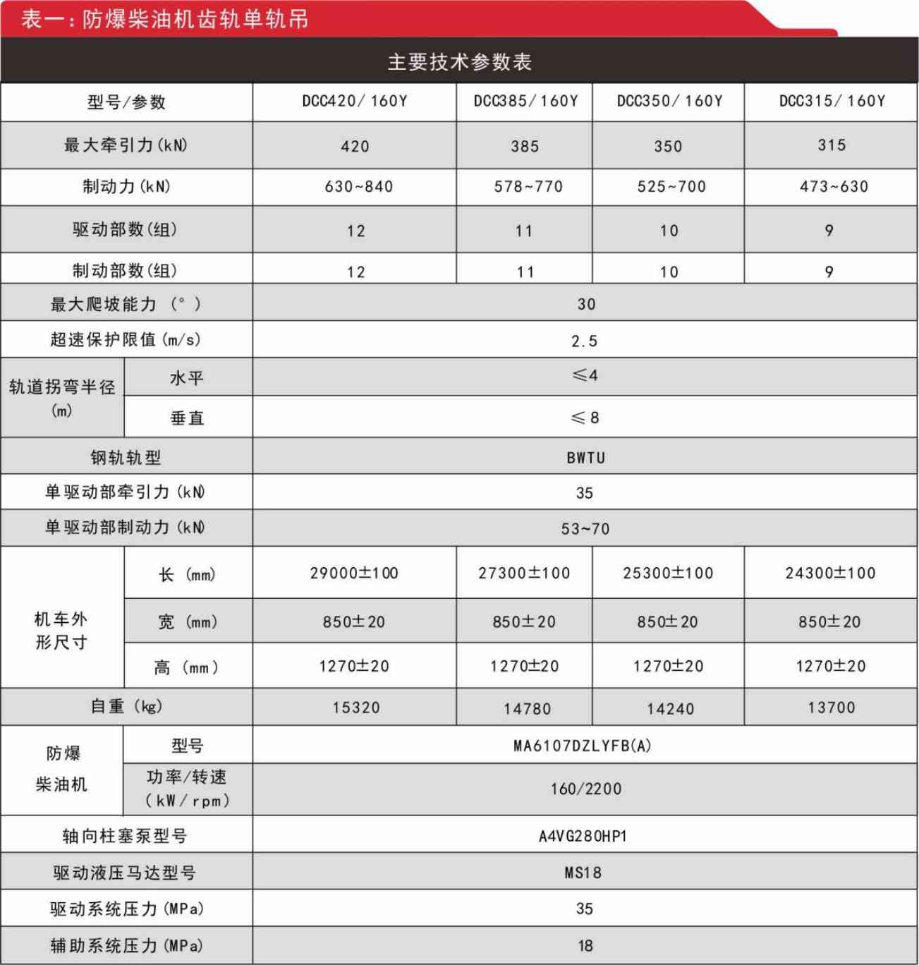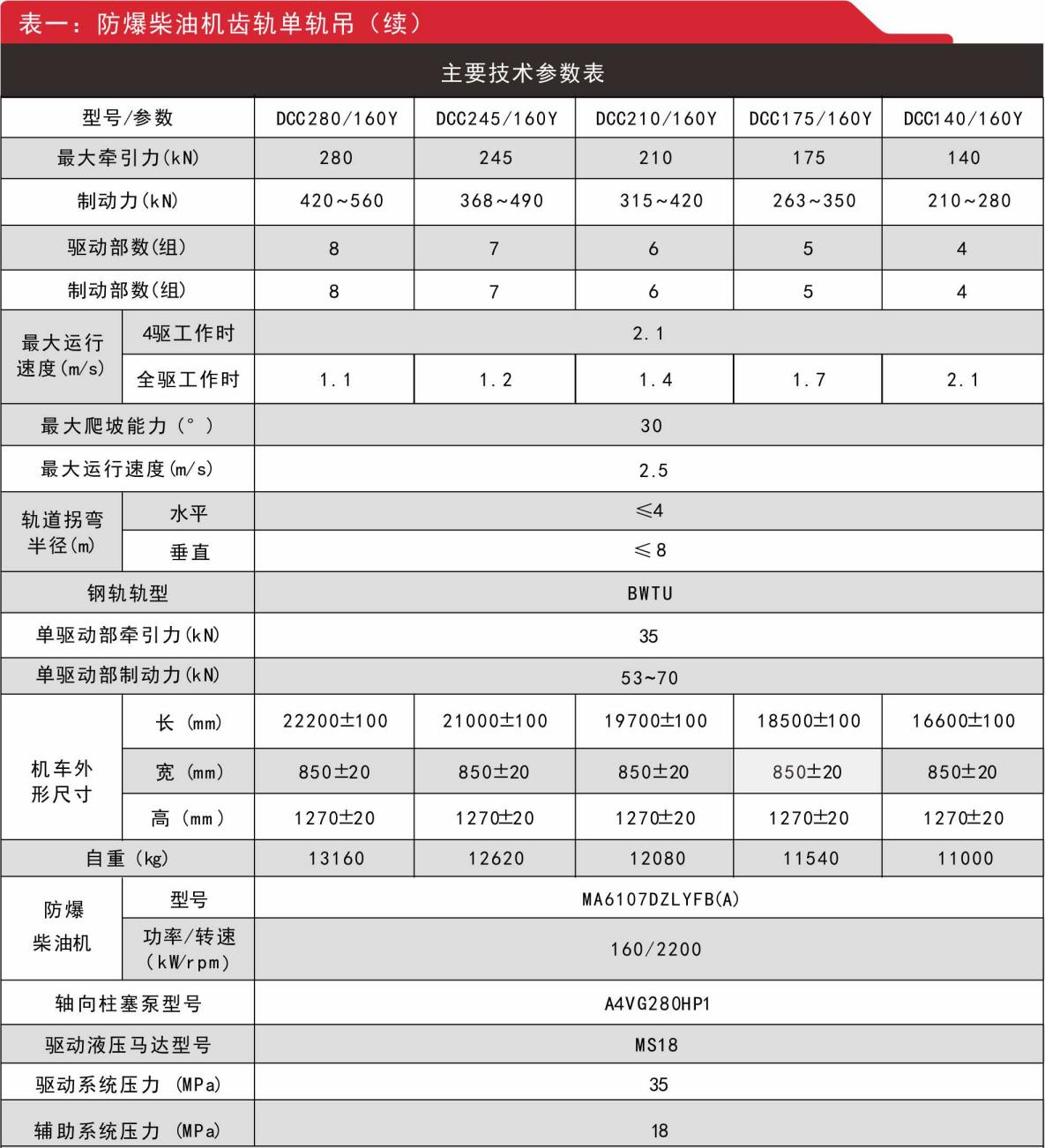 四、防爆柴油機(jī)齒軌單軌吊技術(shù)參數(shù)