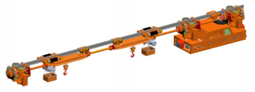 防爆鋰電池永磁變頻調(diào)度單軌吊機車主要由駕駛室、永磁變頻驅(qū)動部、電源裝置(含防爆鋰離子電池)、速度保護小車、承載小車、拉桿、起吊梁、電氣系統(tǒng)、液壓系統(tǒng)、安全保護等組成。