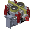 驅(qū)動裝置是由機架、承載輪、驅(qū)動輪、三相異步電機、減速機和制動裝置組成。配備的制動裝置為失效安全型,行走時通過液壓動力將制動閘打開;當(dāng)遇到過速或液壓系統(tǒng)故障時,制動閘實現(xiàn)緊急制動。