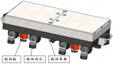 在每個(gè)驅(qū)動(dòng)部的卡軌裝置有四套制動(dòng)器,用于機(jī)車(chē)上坡溜車(chē)和機(jī)車(chē)下坡飛車(chē)時(shí)的緊急制動(dòng)。