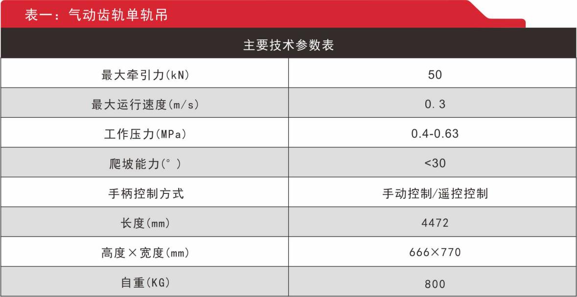 三、氣動(dòng)單軌吊技術(shù)參數(shù)