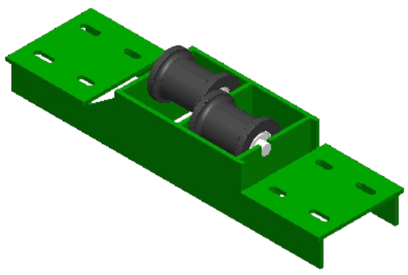 為適應(yīng)起伏變化的巷道,避免鋼絲繩摩擦巷道底板,在線路中的平巷或上變坡點安裝托繩輪組,起到減小磨損,延長鋼絲繩使用壽命的目的。根據(jù)鋼絲繩在軌道的布置方式分為雙繩托繩輪組和單繩托繩輪組兩種。